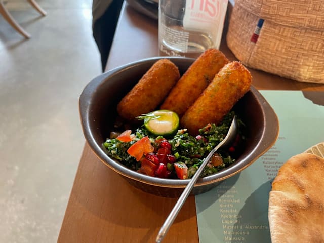 8.5/10Beautifully presented dishes, fresh and tasty as always (although my salad had too much vinegar in proportion with the olive oil). The service is genuinely kind and impeccable. The room gets too hot due to the sun reflecting on the large windows, so next time we'll make sure to sit as further from them as possible so as not to feel discomfort during our lunch.