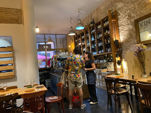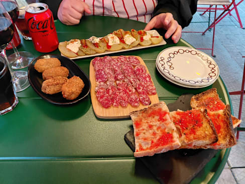 9/10Cute little tapas bar close to plaza espanya. We came here already several times for the food, the wine and the friendly service. It is a nice touch that you can buy the wine you liked with your food and take it home for later enjoyment.
