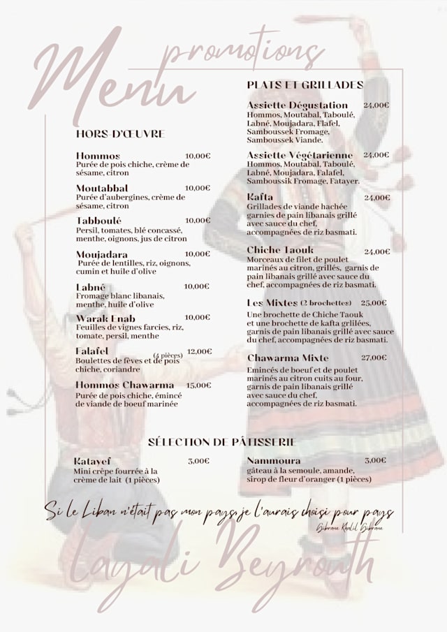 10/10Lovely little family-run restaurant with good reviews did not disappoint. Picked because it was a unique cuisine in Lyon and open on Mondays. Clean and bright in he interior,, well-done Lebanese menu and a unique rose-flavored Kier Maison. It was in a diverse neighborhood with good people-watching. Worth the trip if you’ve had enough of the usual Bouchon fare in Lyon.