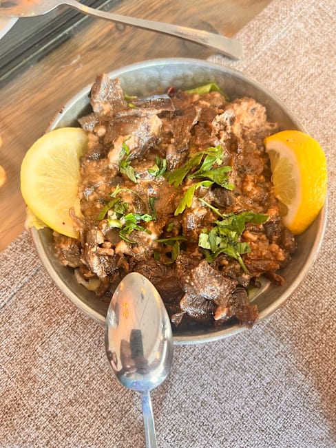 8.5/10There was no soup available and they didn't mention it. When we asked after 20 min of waiting for it, they told they ran out of it and offered another kinds of soup. Ayran is too thick and contains dill in it - I didn't like it (but maybe Lebanese ayran differs from Turkish, I don't know to be honest). Baklava was not really fresh. But meat with funghi was amazing. The environment inside the restaurant is very nice and special.