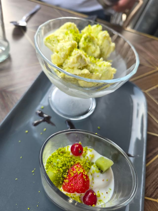 9.5/10Very friendly service, very tasty and delicious food. I am personally not really found of pistachio nut so I am able to review suggested dessert. But it was a very nice experience.