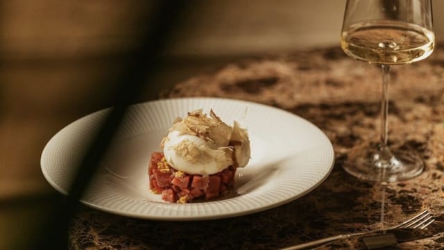 - Tartare di tonno, burrata, friscous, katsuobushi