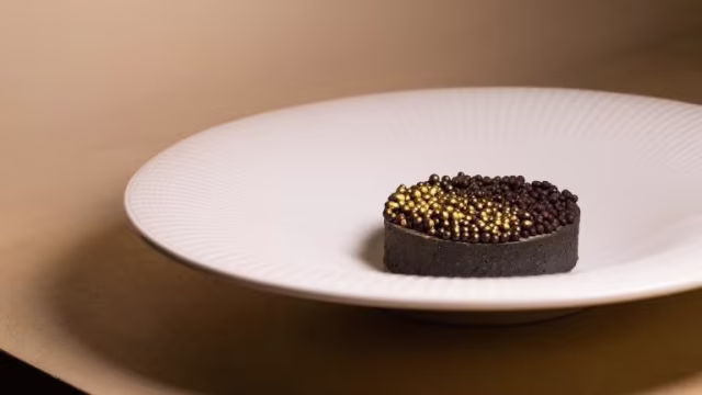 - Tartelletta d'Avena, Caffè Amaro Semiliquido, Crema di Mustacciolo Bianco Antico, Meringa Flambè