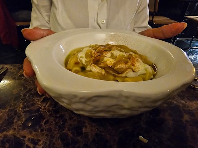 8.5/10Basement Restaurant Indoor seating. . Wine prices high. Cocktails 12 euros. Plates are interesting. Americans Need to be a little adventurous here and follow guide of server..