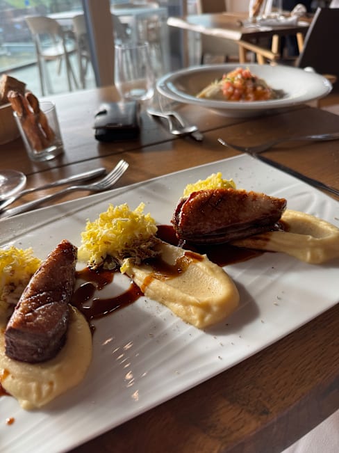 9.5/10Great food finely prepared. Unique view on the alps (yes!) with a well chosen contemporary setting and really nice personnel! A hidden gem to discover.