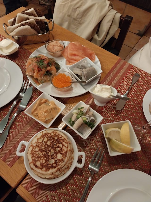 7.5/10If you are into vodka, smoked salmon, marinaded herrings, the. This is the place for you. But it is not for me. I can’t have the entire meal consisting of cold, salty, fishy appetizers. The services were excellent and it was fun seeing hundreds of bottles of vodka.
