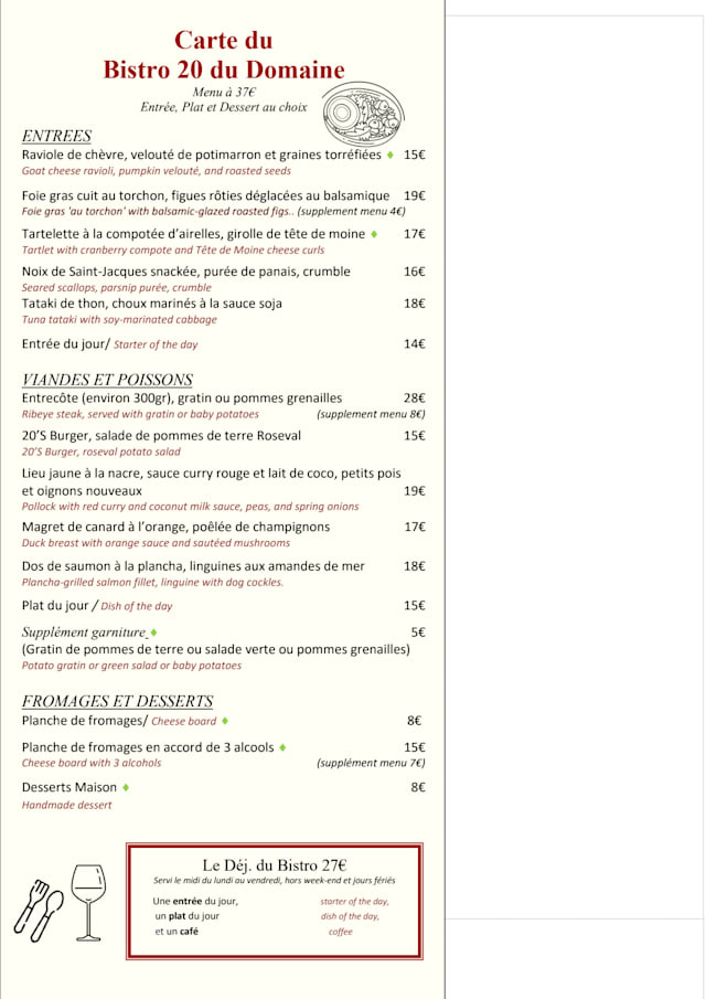 LIEU D'EXCEPTION - Niché dans un havre de verdure, le nouveau restaurant du Domaine de la Corniche (Rolleboise, à dix minutes de Giverny) invite à la convivialité et à l'intimité. Son nom ? Le 20 du Domaine. BISTROT À VINS - Avec une carte légère (signée Julien Razemont) et quelques spécialités d...