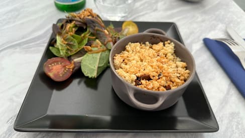 7/10Was looking forward to the 'Shrimp en papilotte' but not actually served in paper at all, which was misleading. Dish was served with curried cauliflower & potatoes but 75% cubed potatoes, so a little boring.