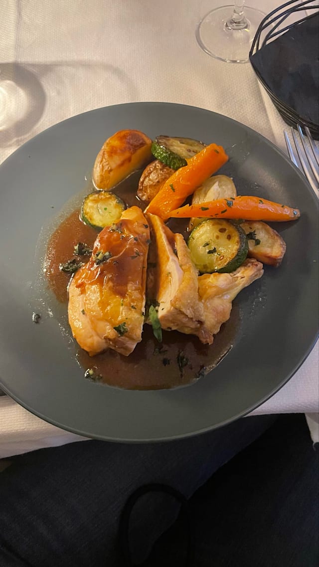 5.5/10so, out 1st night in Paris. Went to 27 Madam for dinner. The evening started well. The restaurant has a great atmosphere. The very friendly waiter spoke English and came around with the menu board which he explained. All good. The starter arrived... nice- blue cheese salad. The main course arrived - chicken. Plenty of meat and tasty but rather light on veg and potatoes for hungry travellers. We'll fill up on desert we thought . But where was our friendly water? Nowhere to be seen or heard. Waited and waited for someone... anyone .. to bring a desert menu. . and after 30 mins, we paid and left.. found a late night supermarket for desert which we ate in the hotel. Considering the rave reviews of some diners, we were very disappointed... and left still hungry.