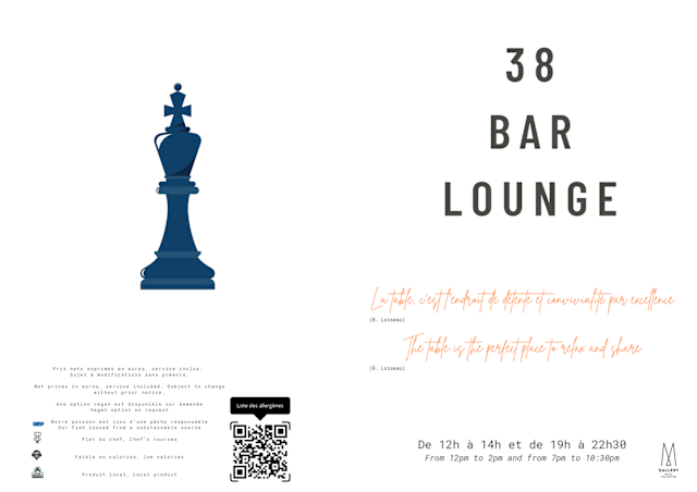 10/10The place has a stylish decor, food is excellent, we had artishoke for a starter and it was delicious. For main we ordered a steak, chicken and beef burger. All the 3 main dishes were excellent taste, very good size and fresh. The service was great, attentive and friendly. We had a wonderful time in Le 38 bar, thank you!
