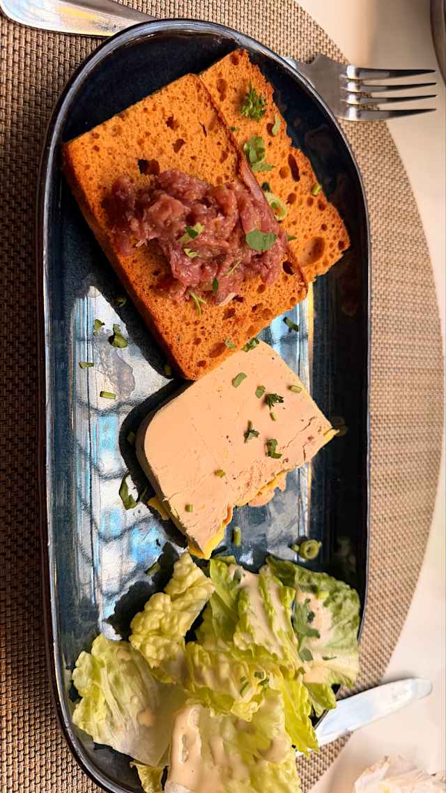 - Au choix: rillettes de canard de barbarie, crème fine de pois chiches, crème d’ar