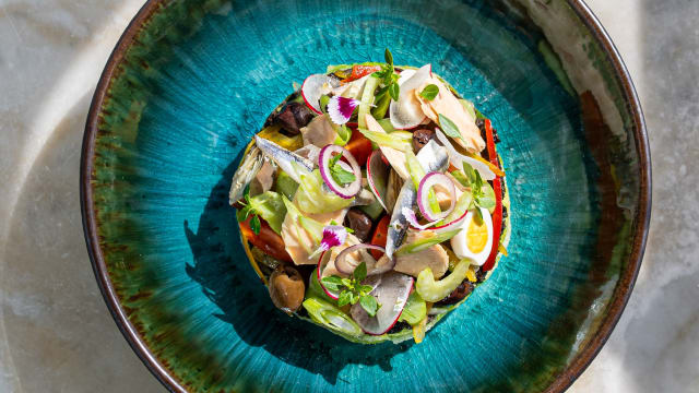 - «Niçoise du palais », tapenade d’olives noires, huile d’olive alziari cuvée pauline, vinaigre balsamique