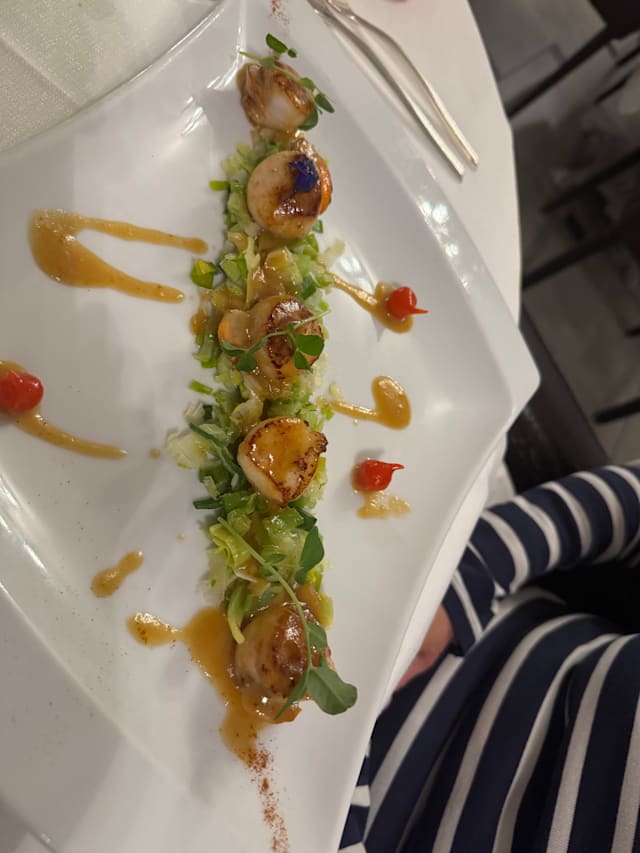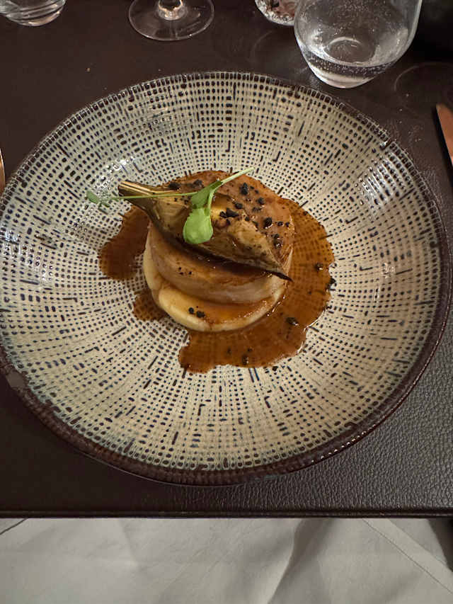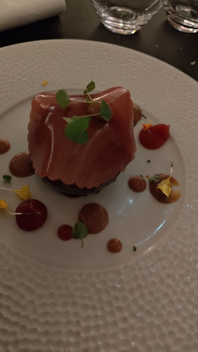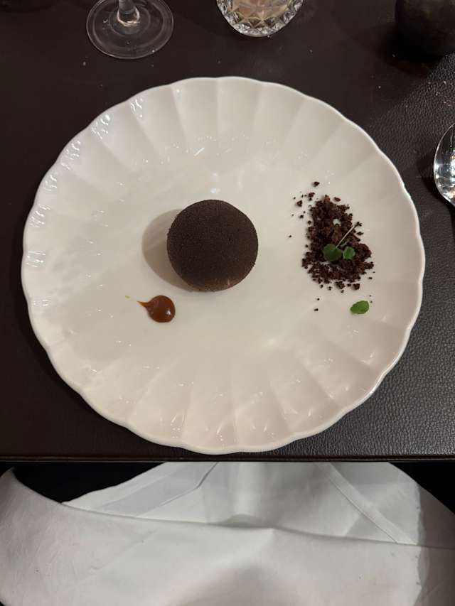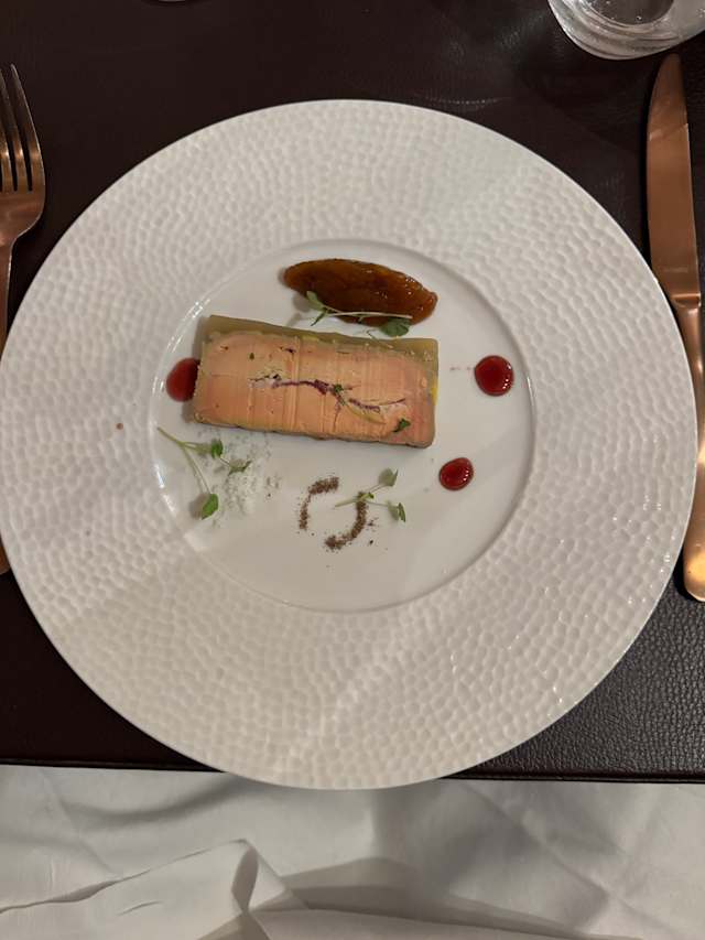9.5/10Lovely food, some of the best we have had in many, many meals in France. Pate de Foie was excellent. My lobster ravioli was good but needed more seasoning, or a piquant contrast. The turbot main was first class, beautifully cooked, but delivered piping hot. Deserts were simply amazingly.