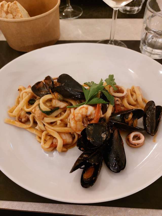 5/10Service was very good and accommodating, bathrooms were clean. Deliberately chose location for vicinity to train station as we were leaving after lunch, so I knew the surrounding area would not be nice before I arrived. Pasta was a little too al dente for our liking. Not a huge amount of flavour. Maybe as an Australian I expect air conditioning everywhere, but on a 35 degree day I choose to sit inside to get out of the heat. No aircon inside. Would I revisit this restaurant - no. Did it suit our criteria for the day? - mostly