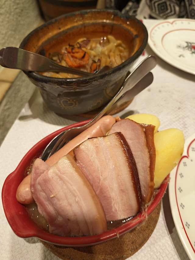 Atmosphere great. Schnitzel very tough. Tart Flambee great. Maybe we were just there on a bad night. Atmosphere is really fantastic Location is perfect in La Petite France.
