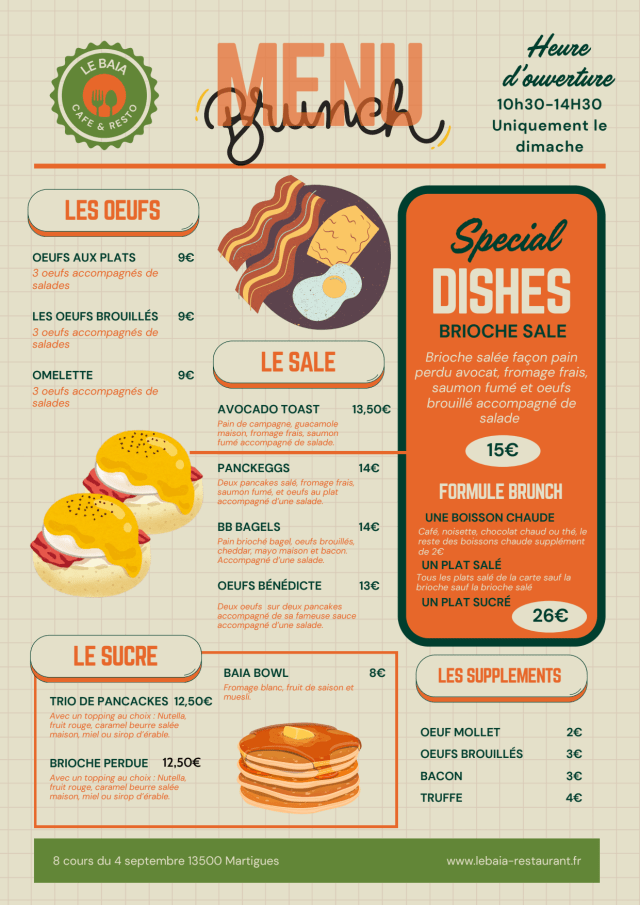 Pour finir le Weekend nous vous accueillerons pour bruncher.