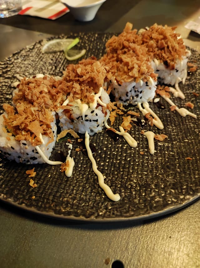 Food was OK, though the seaweed on the sushi was tough and the rice was still warm.
