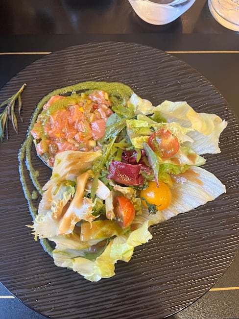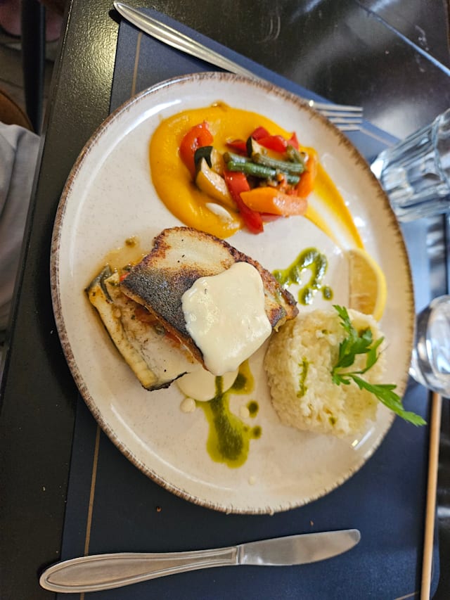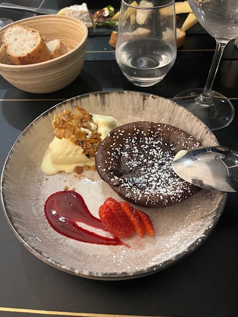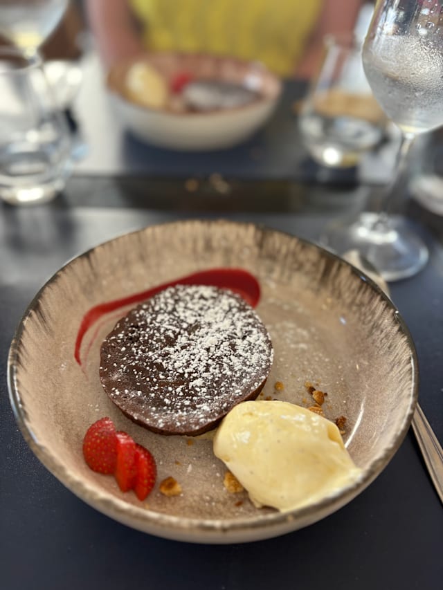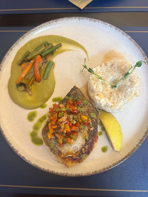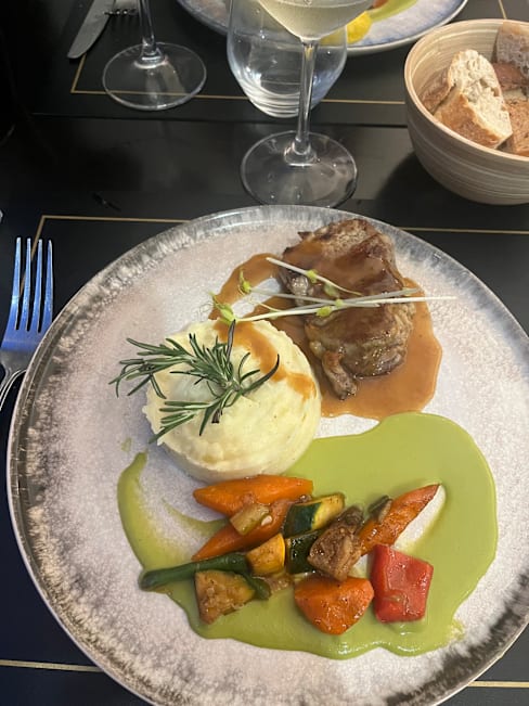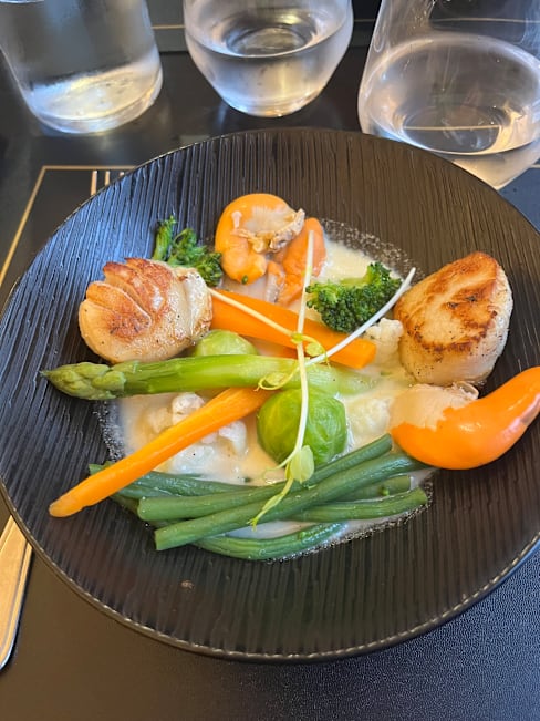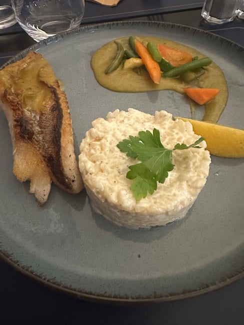 9.5/10+2This was a really lovely meal efficiently served by a one woman front of house band and I’m not sure the kitchen has any more to rely on! The food was that tasty and beautifully presented. Starters of scallops and salmon tartare were excellent; loved the vegetables in the scallop dish particularly. Sea bass and steak good. Cheese and chocolate fondant fab.