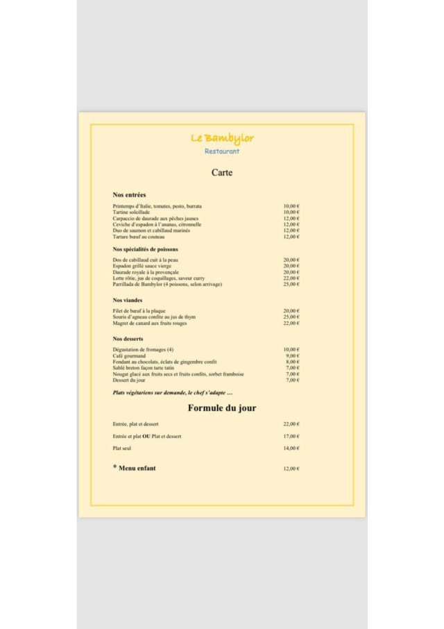 10/10Unassuming exterior but very pleasant interior. Wonderful memorable ceviche and carpaccio fish starters, and likewise the dorade main. Although fish their speciality there were several meat and vegetarian options. All served by friendly and efficient staff. Great value.