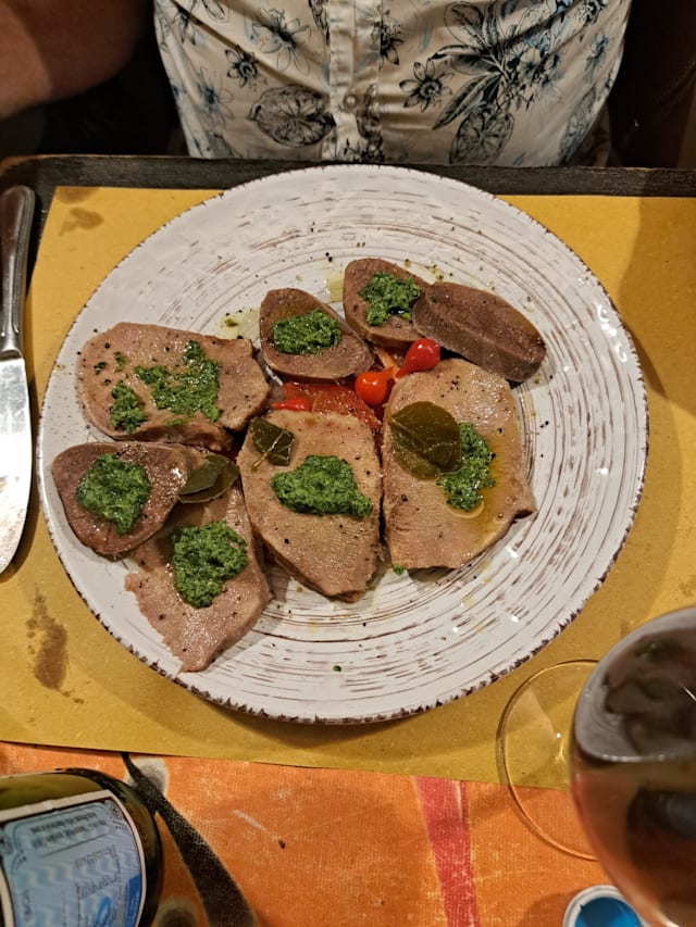 10/10Delicious starters (Acciughe al verde and baccalà in pastella) and mains (beef cheek and “tonno di Chianti”) with excellent house wine. Location just off Piazza duomo; in the heart of the old town but a bit less crowded than most of the streetside places we saw. Friendly and relaxed service.