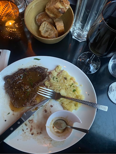 8/10Charming hostess, warm ambience. The problem was that a 30€ entrecôte was flat, stringy and fatty, a poor piece of meat. One suspects that Fork clients are served perhaps a 'special' cut.