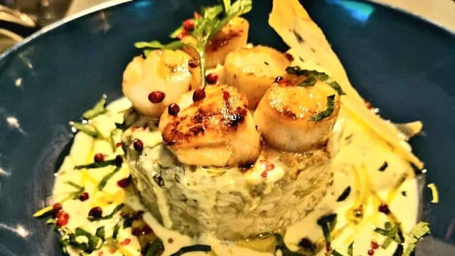 3.5/10the food was dreadful. so disappointing. risotto was gluggy and had been reheated in a microwave. calamari was terrible. my husband could not eat it. very bad experience . only positive point was the nice waitress. I never write reviews but this meal was so bad I felt compelled to write this review