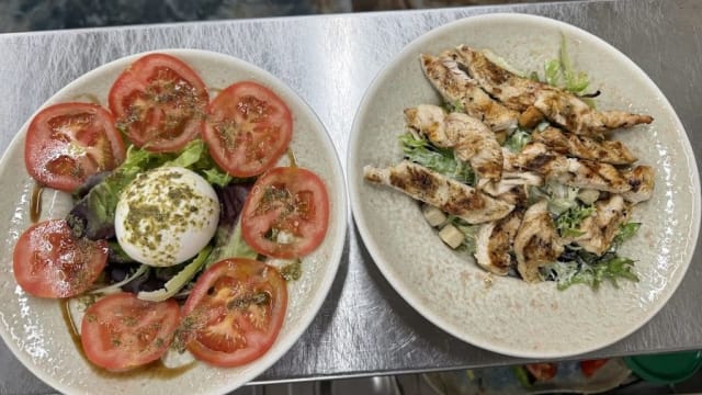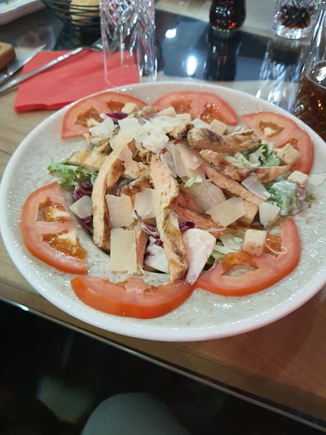 (Tomates, poivrons vert et rouge, olive, choriza, mais)