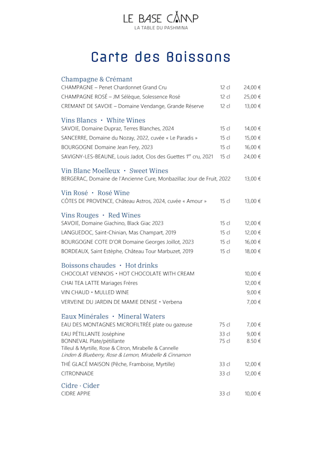 Le Base Camp by Pashmina is identified as offering french cuisine.