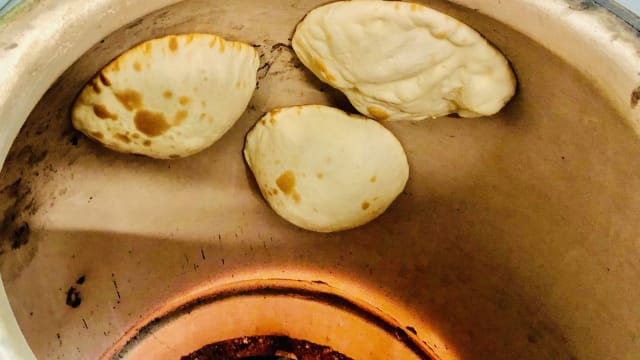 Galette de farine de blé légèrement levée, fourrée à la viande