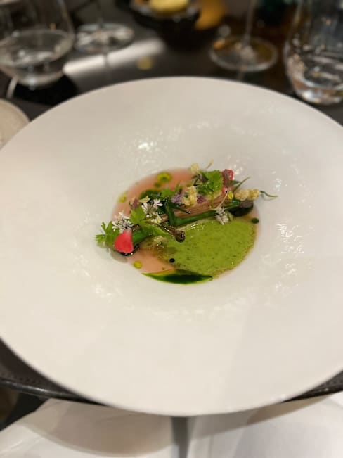 10/10Simple but fancy setting. The chef’s idea is to create a bond between high end dishes and nature (sphere and rock like dishes), while the food gravitates around superbly cooked vegetables with a reminder of soft proteic and well cooked meat/sea food. Food was great, desserts full of nice surprises. Staff very friendly, young and professional. Strongly recommend!