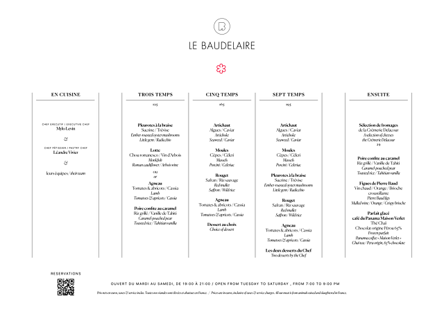 7/10Ambiance and service was amazing. Unfortunately, the food was just not our preferred flavor profiles. I was not a fan of four of the seven total courses had. My husband disliked five of the seven courses. Both of us liked neither of the two desserts. We wanted to remain open minded, but just was not our thing. Thank you Le Baudelaire team for still a great time and a lovely final evening in Paris.