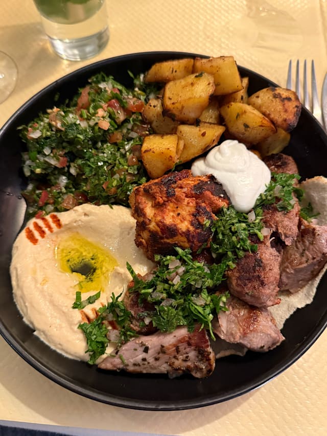 7.5/10The staff of mother father & daughter were very welcoming - we were super late and they kept the table for us. The ambiance was friendly and authentic. The starters were a bit sparse Lebanese should be lashings of flat breads homous tzatziki babaganosh but wasn’t enough served between 8 of us even though we ordered 2 of everything- Mains were ok but my chicken shwama wasn’t lush crispy chicken was quite limp and insipid- I’m used to really fabulously delicious Lebanese food and although we had a lovely evening the food really didn’t hit the spot!