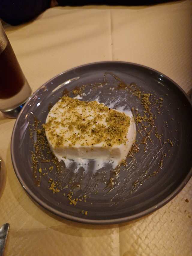 - cheveux d'ange caramélisés en mille feuille, caillé de crème de lait à l'eau de rose