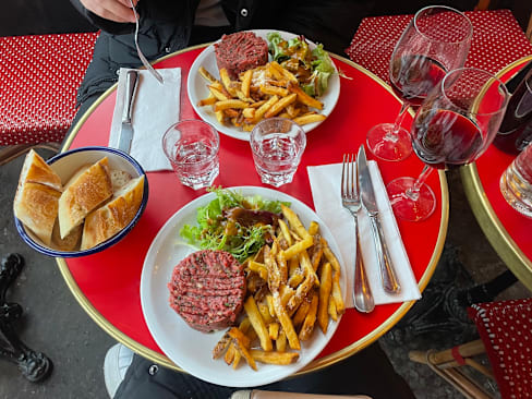 5.5/10I expected more from the food there because of the other comments. But it was just average. Prices were cheap for Paris. But taste was only ok. Beef Tartare didn't taste like much. Wouldn't go there again.