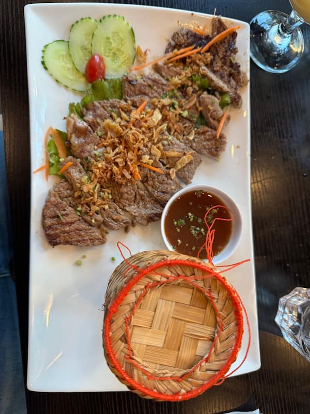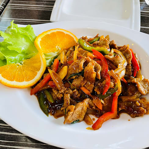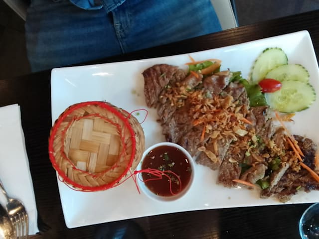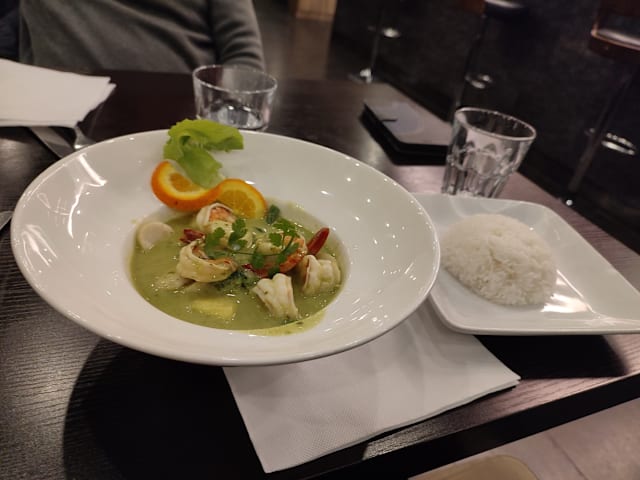 8/10We were three people, we ordered Green Curry (Chicken) and Sweet and sour chicken. The green curry was nicely spiced, a little too much coconut milk flavour in my opinion, and served with some vegetables. The rice had to be ordered separately, but I really enjoyed it. Sweet and sour chicken was basically a crispy chicken breast served with a sweet and sour dip. The dip was not very flavourful and its quantity is not enough, so I had to order an extra one. There was a lot of sweetness but it lacked a bit of the sourness. The dip was also very liquid, i’m usually used to a thicker texture, but it was not bad I enjoyed it. The rice is also ordered separately. Overall it was a nice experience, I would come back to taste new things. It’s better than your average Thai restaurent.