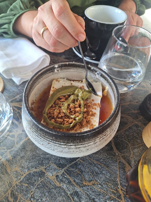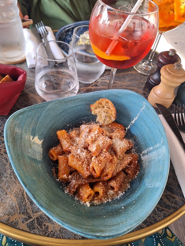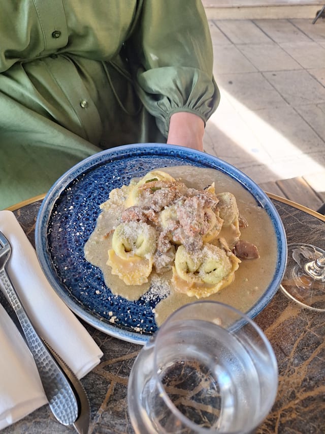 7.5/10The food was good. The female attendant talked through the wines and allowed us to taste before going ahead with our choices. The wine was nice. The male attendant went through the menu choices. We shared some panises. Then my wife had gnocchi with beef, whilst I had the pork steak. On arrival, although we gave our names after booking on The Fork, it was not registered that we had attended and I had to chase up afterwards. The area where the restaurant is, is okay, we decided to eat outside. At the end of the meal, we noticed that the table next to us were offered some digestif drinks, but not to ourselves. Overall, it was okay.