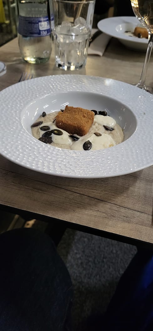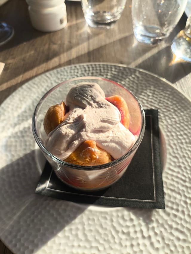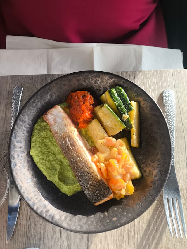 3.5/10Waiter was nice , our wine glasses were different than everyone else's and we had ordered bottled wine not by the glass. Our glassware were tiny. We were not offered water and had to request it. The food came out minus one of our guests meals, the food was cold and overcooked. Our food was taken back to be remade, missing meal arrived simultaneously. When food came back they had just reheated it, which made the overcooked fish even worse, the steak was inedible and unable to cut. Pretty view but not a place I would recommend for food at all.