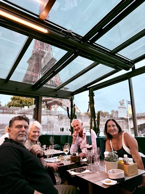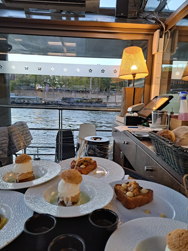 2.5/10Service was definitely not good. I guess i expected a more friendly environment but it was not. My waiter was pleasant but our service was bad, when we arrived the security guard had a really bad attitude, the host didn't see my reservation because he was only paying attention to the previous cancelled one when it clearly showed the upcoming one that i was there for. So all of that started the bad service and eventually when it got to the service they forgot to cook a plate for my father in law so he had to wait like 20 mins. Overall, i wouldn't return to this restaurant. The view from inside the boat is not the best. Also... the food was bland. I went to other restaurants around Paris that had better food. In all honesty, you are paying for "the view" not the food. I would recommend you go somewhere where you actually enjoy the food and service.