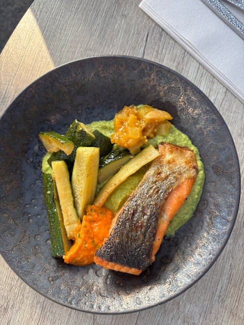 6/10Everything was great except for the food. For a kids meal why give an entire chicken breast to a child? It’s not cut up or anything. For the price that could be better. The flavor just lacked for me on the salmon. Please include ice with the water especially when it’s 85 degrees outside. It’s small things that matter. Genuine hospitality goes a long way.