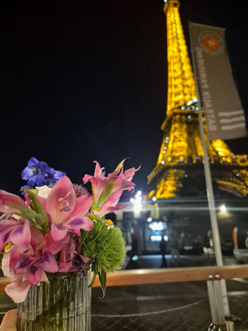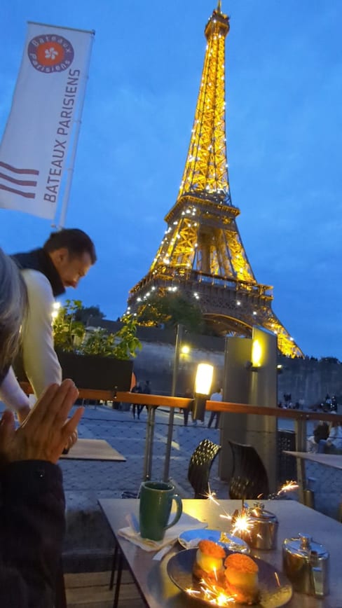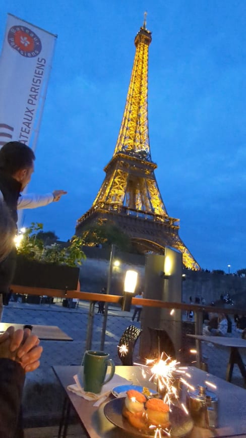 7.5/10I took my mom here to celebrate her 79th birthday with a view of the Eiffel Tower. It was an amazing experience! The food was average, our dishes didn't arrive at the same time and the appetizers came after we were eating our main course, but the birthday experience provided by our waiter was top notch! I mentioned it was her birthday to the host when we arrived and after our dinner our very sweet waiter brought her dessert, with a sparkling candle, singing happy birthday and the best part... he timed the end of the happy birthday with the start of the sparkling lights of the tower. It was incredible and beautiful!! The quality of the food weights heavily on this rating, which is a bit of a shame in our case because the service was much more significant in our experience. This was my mom's first (and possibly only) visit to Paris and that's a memory we'll both forever cherish. Thank you so much!