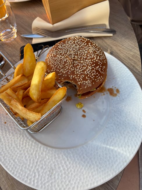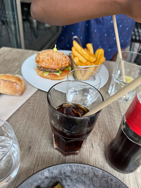 6/10If you’re visiting the Eiffel Tower and looking for a convenient place nearby to grab a bite and a glass of wine, Le Bistro Parisien is a solid option. Located just steps from the tower, right by the river and the boat tour docks, it offers a lovely view of the Eiffel Tower—especially in the evening. We made an 8pm reservation and were seated promptly. The outdoor seating is quite tight, with tables very close together, so don’t expect much privacy or space. The menu is fairly limited, with only a handful of options. We ordered the salmon but were told substitutions (like swapping zucchini for mashed potatoes) weren’t possible. The burger and fries were fine, and the kids’ chicken breast and pasta with cheese sauce were okay, though our kids didn’t love them. Service was a bit slow—understandably so, as it looked like there was only one waiter handling all the outdoor tables. As for drinks, the mojito and Moscow mule were just average- presentation and flavor could be better.