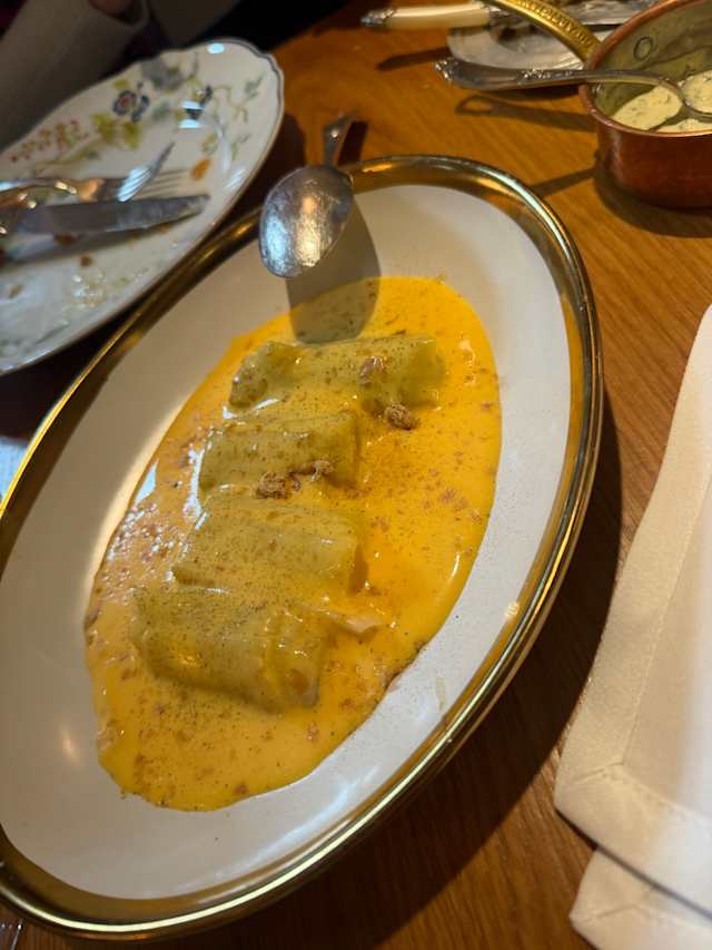 - Raviolis de dauphiné a nuestra manera al comté, salsa vin jaune