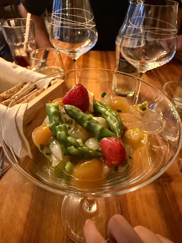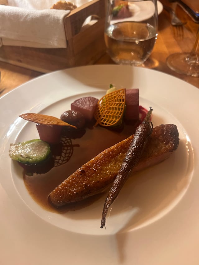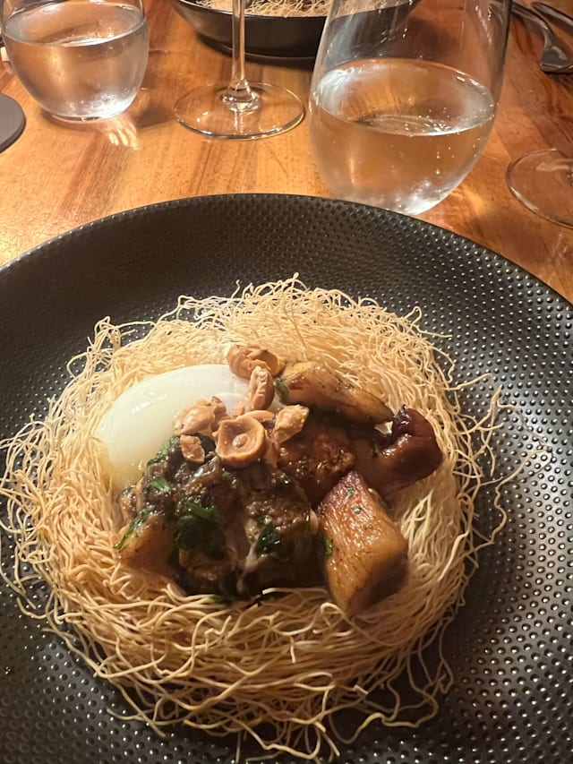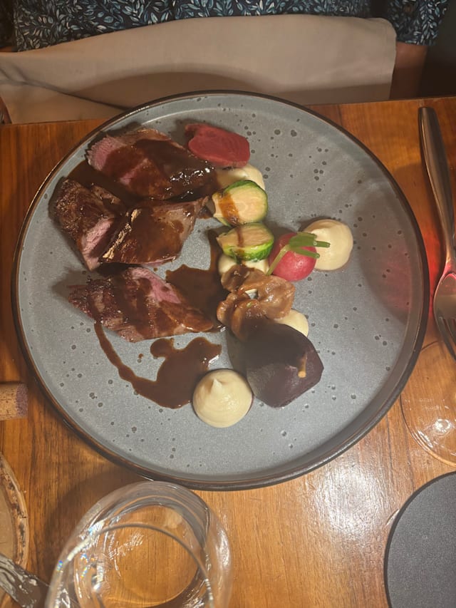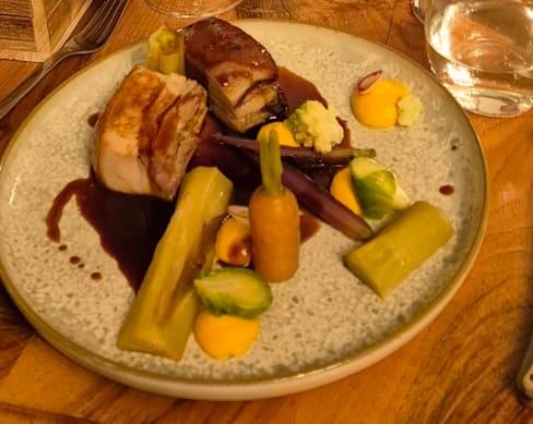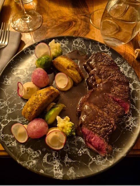 9.5/10Very attentive server, well informed, great attitude. The food was delicious, great nuance in the dishes, creative sauce and presentation. Small menu which we appreciate, so that the kitchen can really focus on excellence Unfortunately, the one dish the guest of honour wanted (lamb) was not available that day. Would be good for guests to know when dishes contain pork.