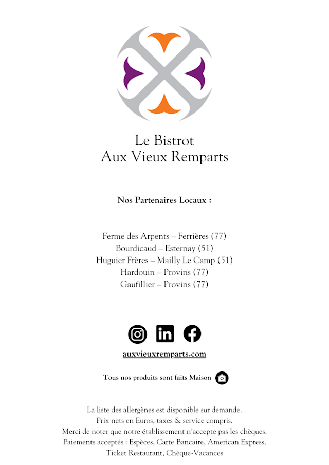 Bonjour Sarah, Merci pour votre note ! Nous sommes ravis que votre expérience dans notre Bistrot vous ait plu. Au plaisir de vous accueillir à nouveau. La Famille Aux Vieux Remparts