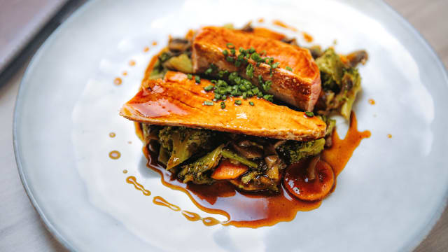 Explore the chef's selection menus with diverse dishes at fixed prices. Some are bookable via TheFork, while others are available onsite.