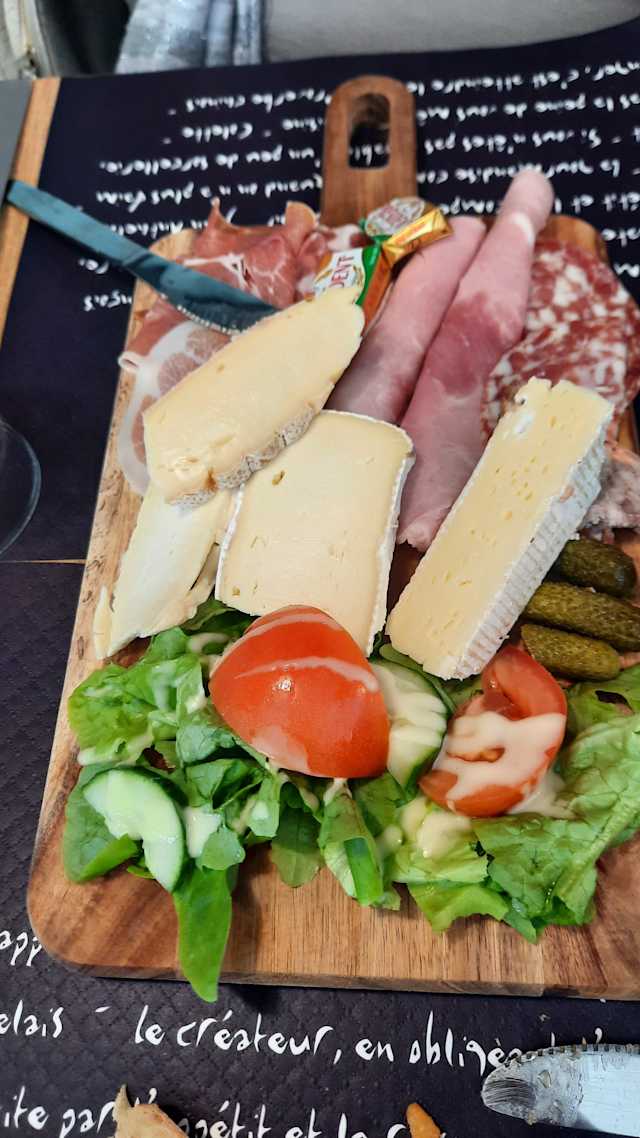 - Charcuterie & fromage (terrine de campagne, coppa, jambon serrano, rosette, chorizo, pont-l'évêque, maroilles, saint-nectaire, camembert au lait cru)