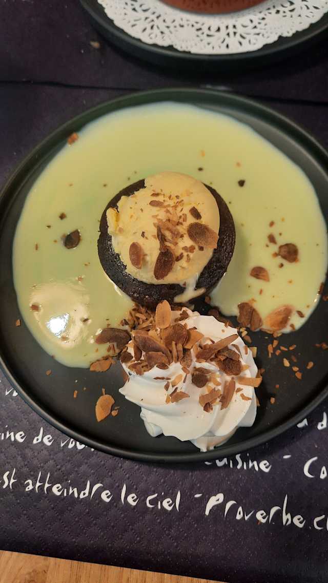 - (Glace pistache, glace chocolat, glace nougat et chantilly Isigny)