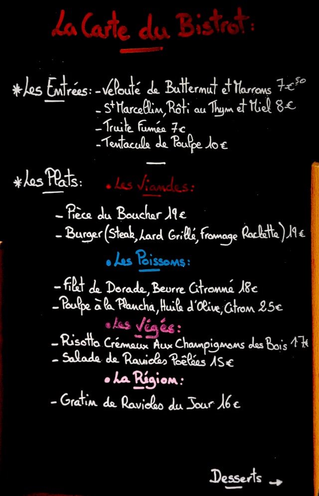 10/10Its a nice and cozy restaurant with delicious food, service very friendly, we enjoy a fresh and local food it was very nice. We other for apperitive a kir cassis , for started a saint Marcellin cheese and honey baked for second dish fish dorada with nice grill veggies and rice its was perfect cook with a nice wine for drinks , for dessert a fantastic creme brulee and expresso yummyyyy. I recommend 100% we enjoyed everything. Thank you