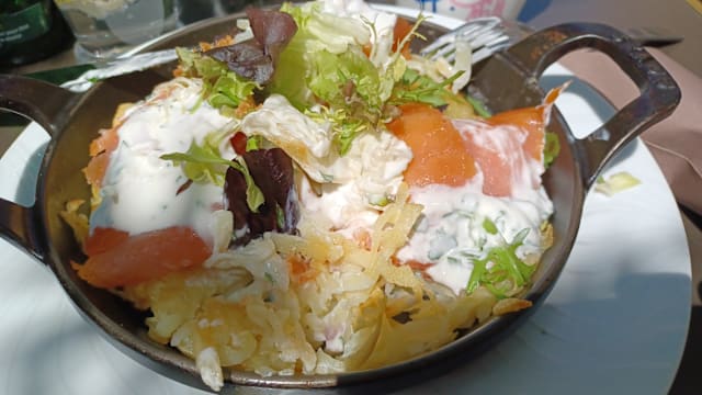 4.5/10food came very fast but cold. choucroutte watery and meat with no taste. roesti with munster boring, fish with sarfran potatoes ok but also quite cold. the waiter was informed but no more reaction then - sorry.