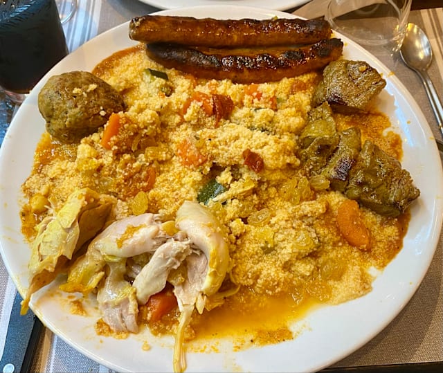 9.5/10Unbelievably good! The couscous is fluffy and light, the meats are perfectly cooked (the chicken is especially good!) and the vegetables and broth add depth and character. The Algerian wine is also fantastic!